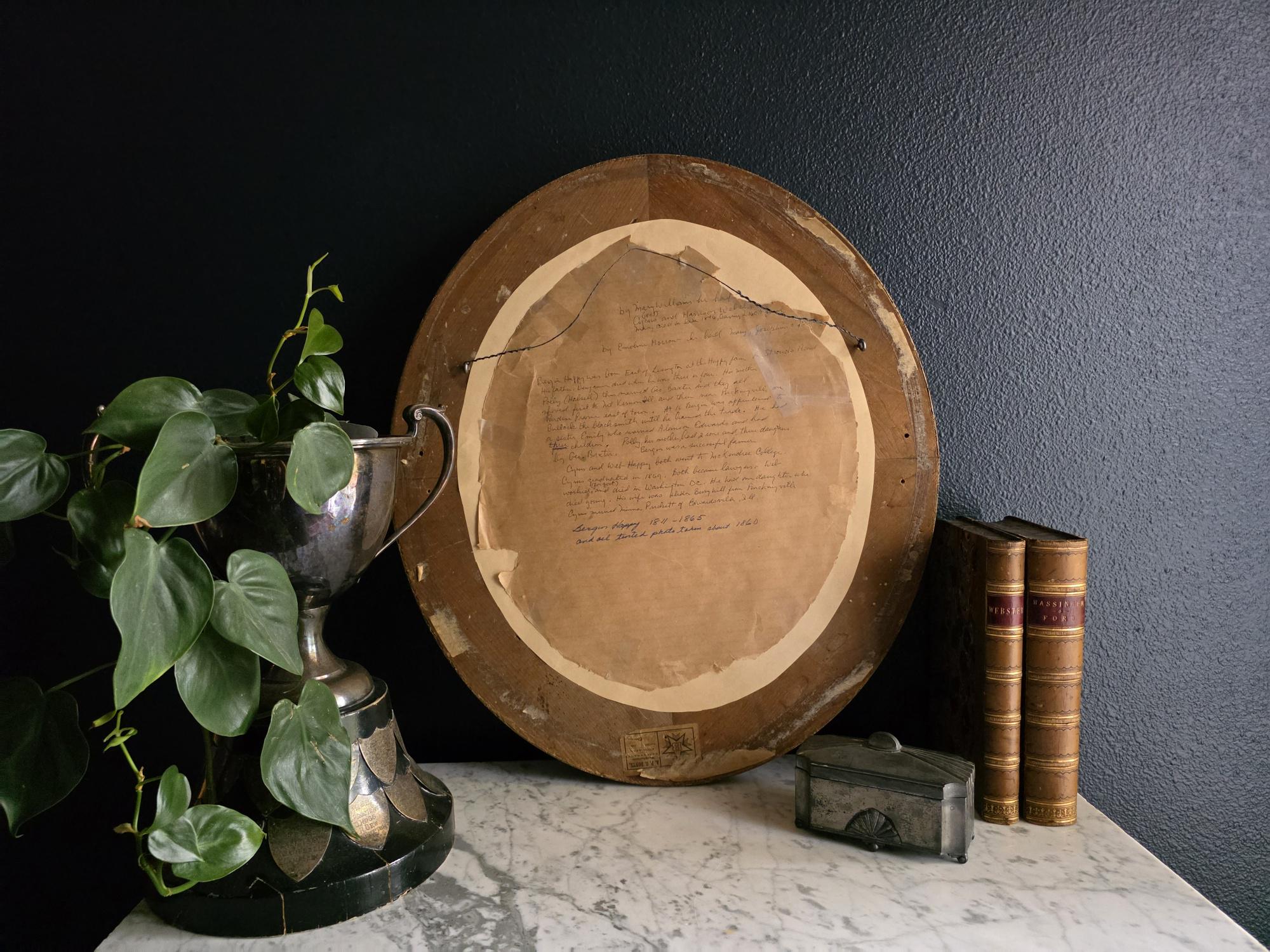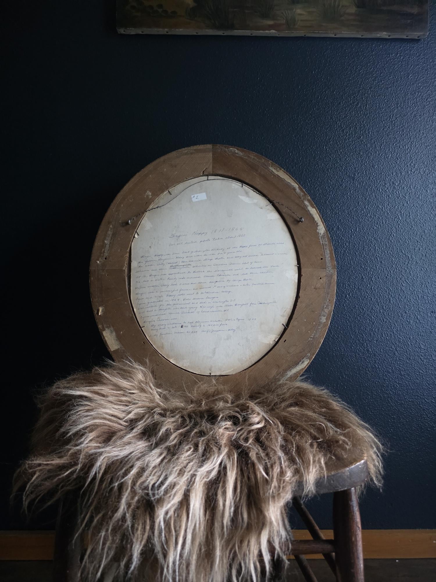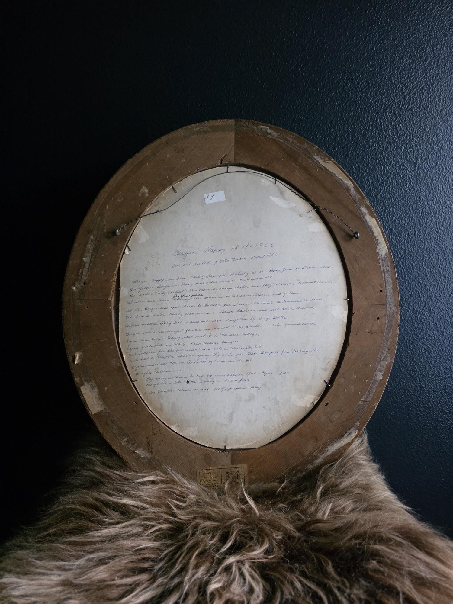 Disclosures: This oil tinted photograph is 165 years old and has been well cared for during its time. Multiple scratches and small knicks can be found across the photos surface. The frame is in beautiful condition overall with minor chipping. The detailed provenance is recorded on the back of the photo itself. A secondary copy of the provenance was captured on backing paper that was well worn and falling off the back of the frame. In order to preserve both records, the secondary record was mounted to new backing paper and affixed using double sided tape (covering the original provenance recorded on the back of the photo). If you prefer, the backing paper (with the secondary record) is readily removable if you prefer to expose the original provenance.