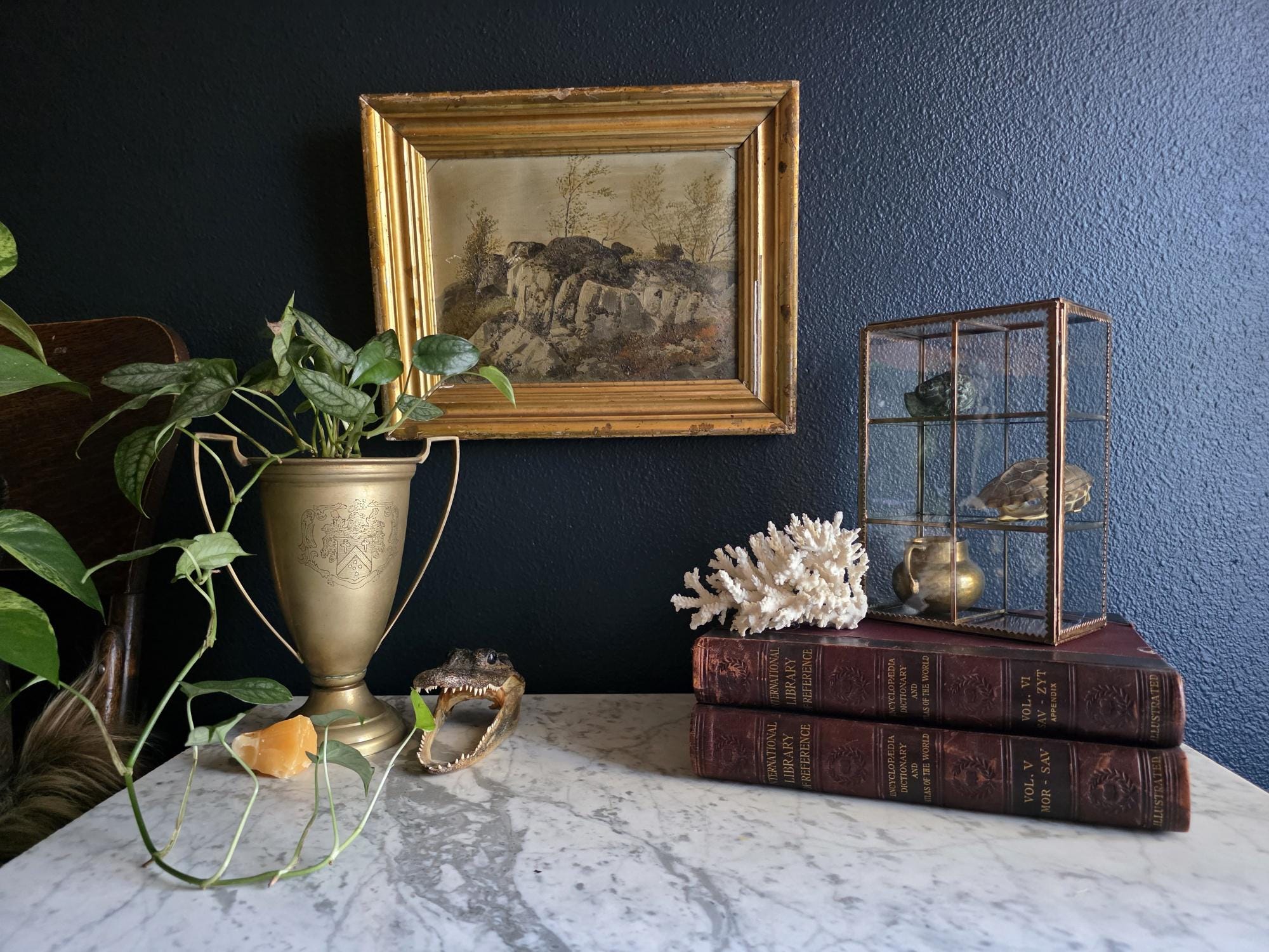 VINTAGE & ANTIQUE Vintage and antique items are pre-owned and aged goods. In most cases, we do not clean or polish any items that come into our shop. Once you remove an item's traces of age and patina it's not something you can reverse, so we leave those activities up to the buyer. We do not disassemble found art from their frames unless it is necessary to differentiate a print from an original piece of art. Vintage prints purchased from this shop could originate from any print media (e.g., magazines, books, photographs, art prints, etc.). We try our best to describe items accurately and disclose any and all flaws and imperfections. Please refer to pictures as a visual description. We want to make sure you are happy with your purchase so, please do not hesitate to ask any questions you may have prior to checkout.