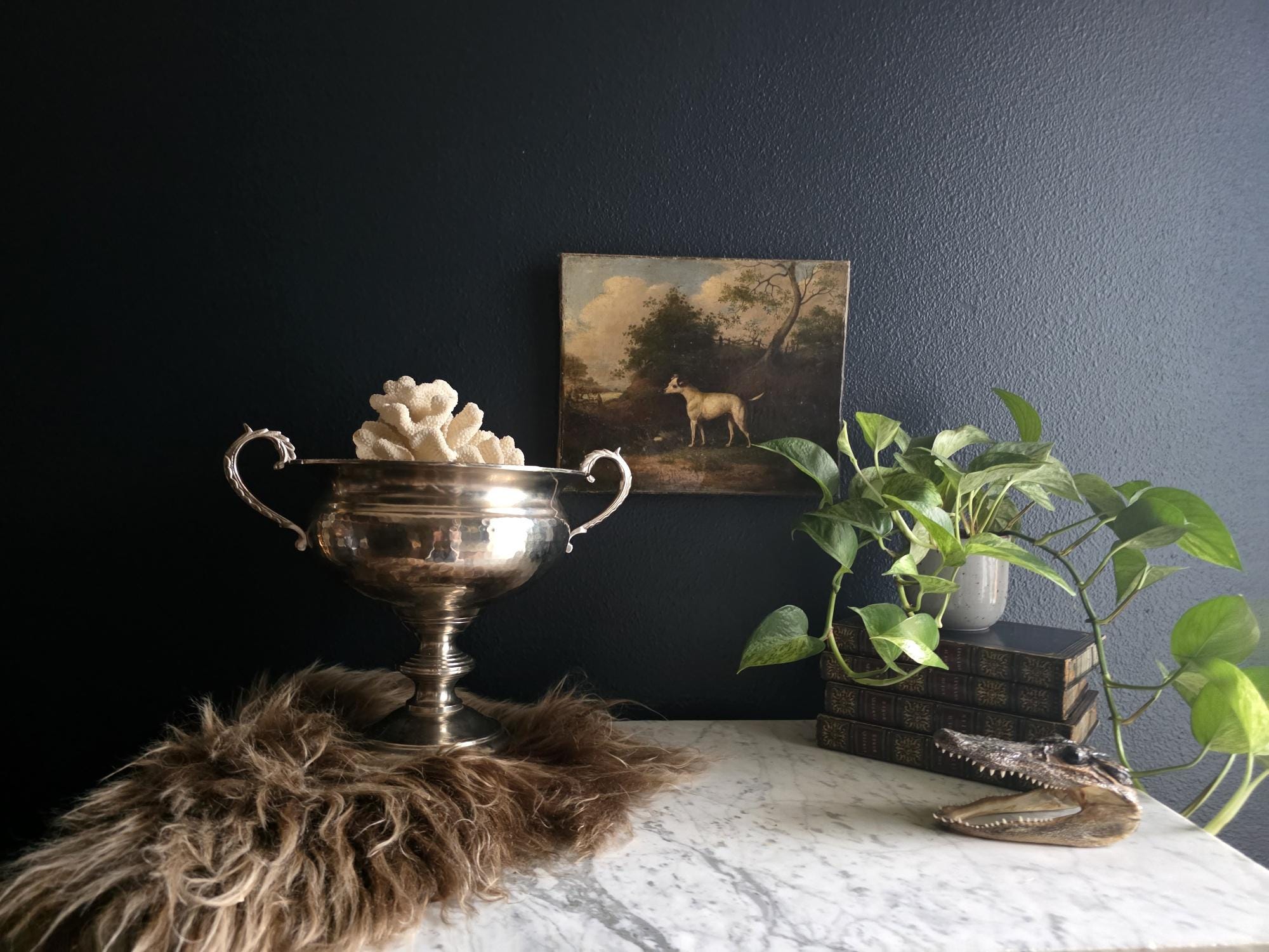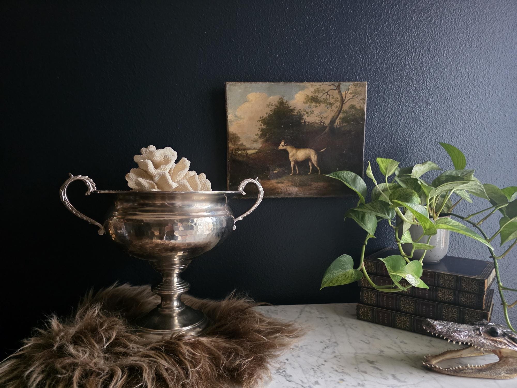 This vintage piece remains in excellent condition, retaining a warm, authentic luster that showcases its high-quality silver-plated craftsmanship. While it can be polished to a mirror-like shine for a formal tablescape, its current soft patina adds a touch of historic charm. This timeless accessory is a perfect addition for those looking to bring The Bombay Company’s signature old-world elegance into a modern home.