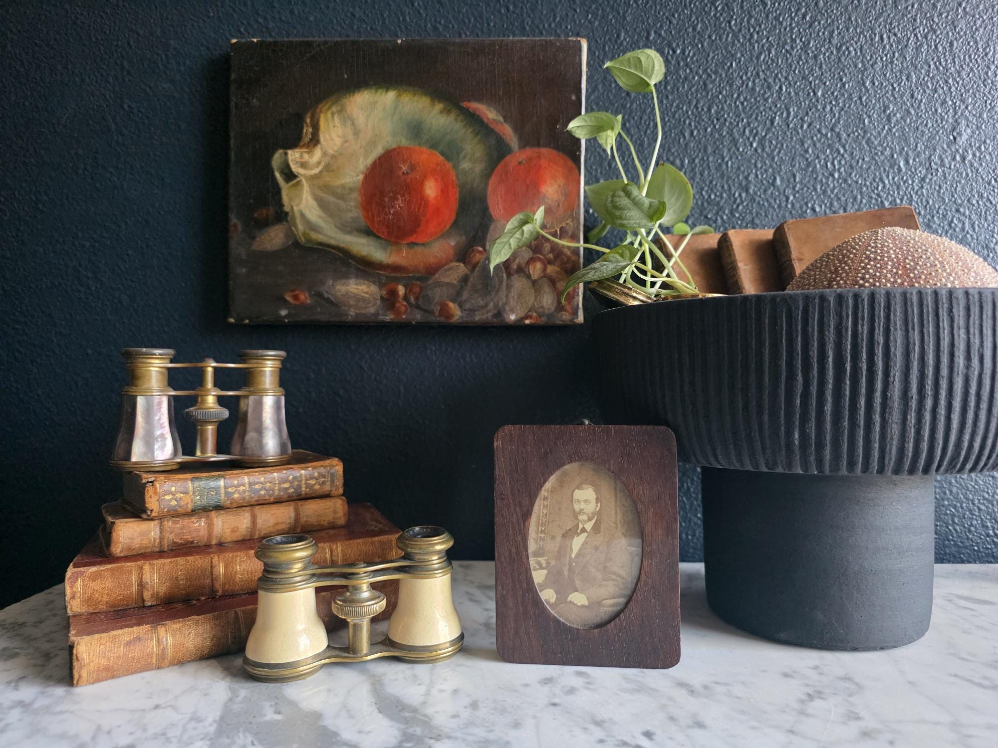 VINTAGE & ANTIQUE Vintage and antique items are pre-owned and aged goods. In most cases, we do not clean or polish any items that come into our shop. Once you remove an item's traces of age and patina it's not something you can reverse, so we leave those activities up to the buyer. We do not disassemble found art from their frames unless it is necessary to differentiate a print from an original piece of art. Vintage prints purchased from this shop could originate from any print media (e.g., magazines, books, photographs, art prints, etc.). We try our best to describe items accurately and disclose any and all flaws and imperfections. Please refer to pictures as a visual description. We want to make sure you are happy with your purchase so, please do not hesitate to ask any questions you may have prior to checkout.