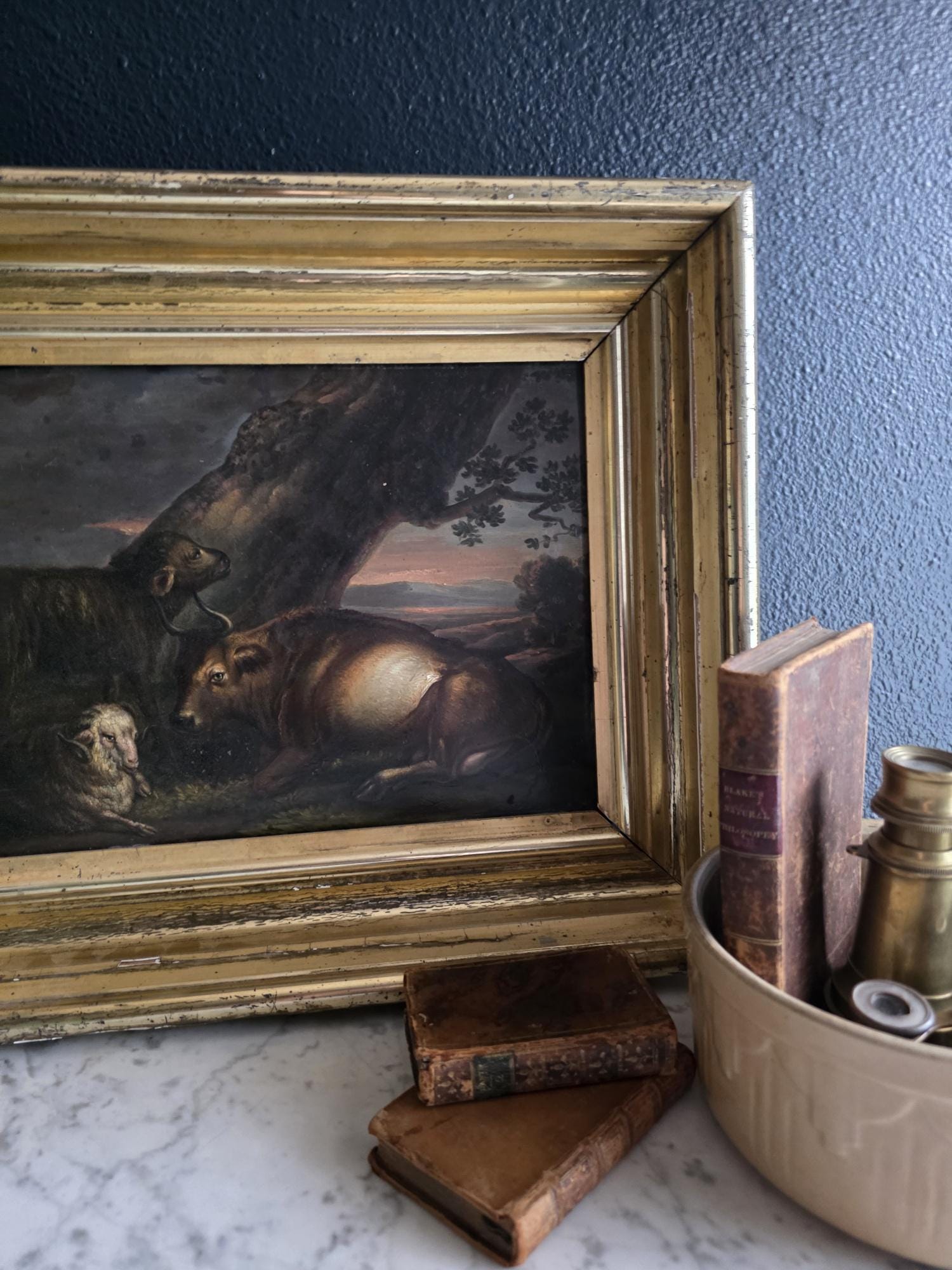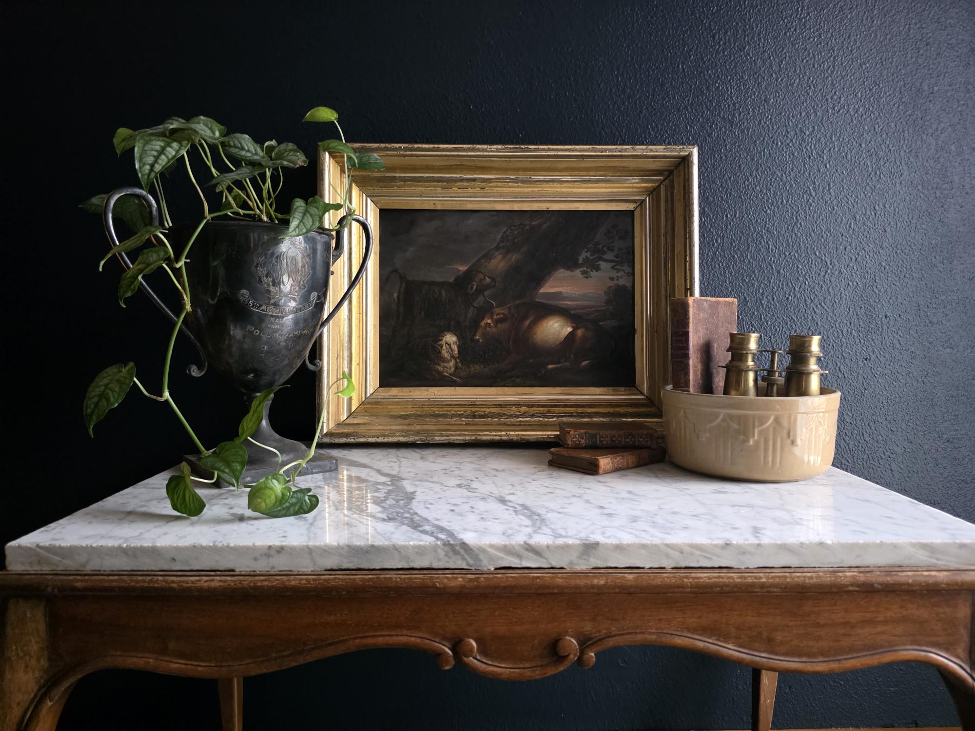 - Maker Origins: The subject matter—livestock in a dark, atmospheric landscape—is highly characteristic of the Dutch or Flemish Schools, which specialized in "cabinet paintings" on copper for private collectors. The refined handling of the animals also shares similarities with the British School of pastoral painting popularized by artists like the circle of Thomas Sidney Cooper.