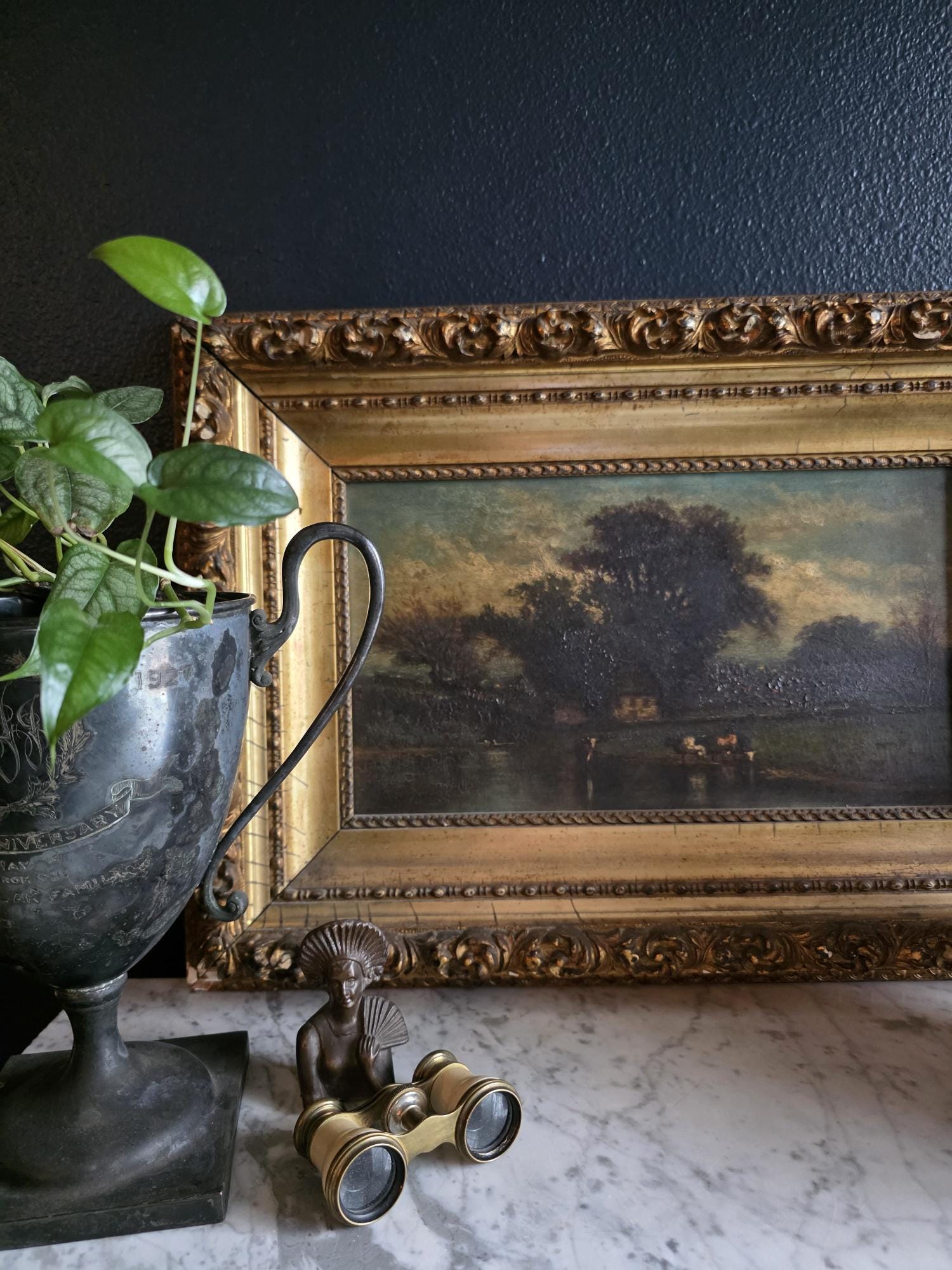 VINTAGE & ANTIQUE Vintage and antique items are pre-owned and aged goods. In most cases, we do not clean or polish any items that come into our shop. Once you remove an item's traces of age and patina it's not something you can reverse, so we leave those activities up to the buyer. We do not disassemble found art from their frames unless it is necessary to differentiate a print from an original piece of art. Vintage prints purchased from this shop could originate from any print media (e.g., magazines, books, photographs, art prints, etc.). We try our best to describe items accurately and disclose any and all flaws and imperfections. Please refer to pictures as a visual description. We want to make sure you are happy with your purchase so, please do not hesitate to ask any questions you may have prior to checkout.