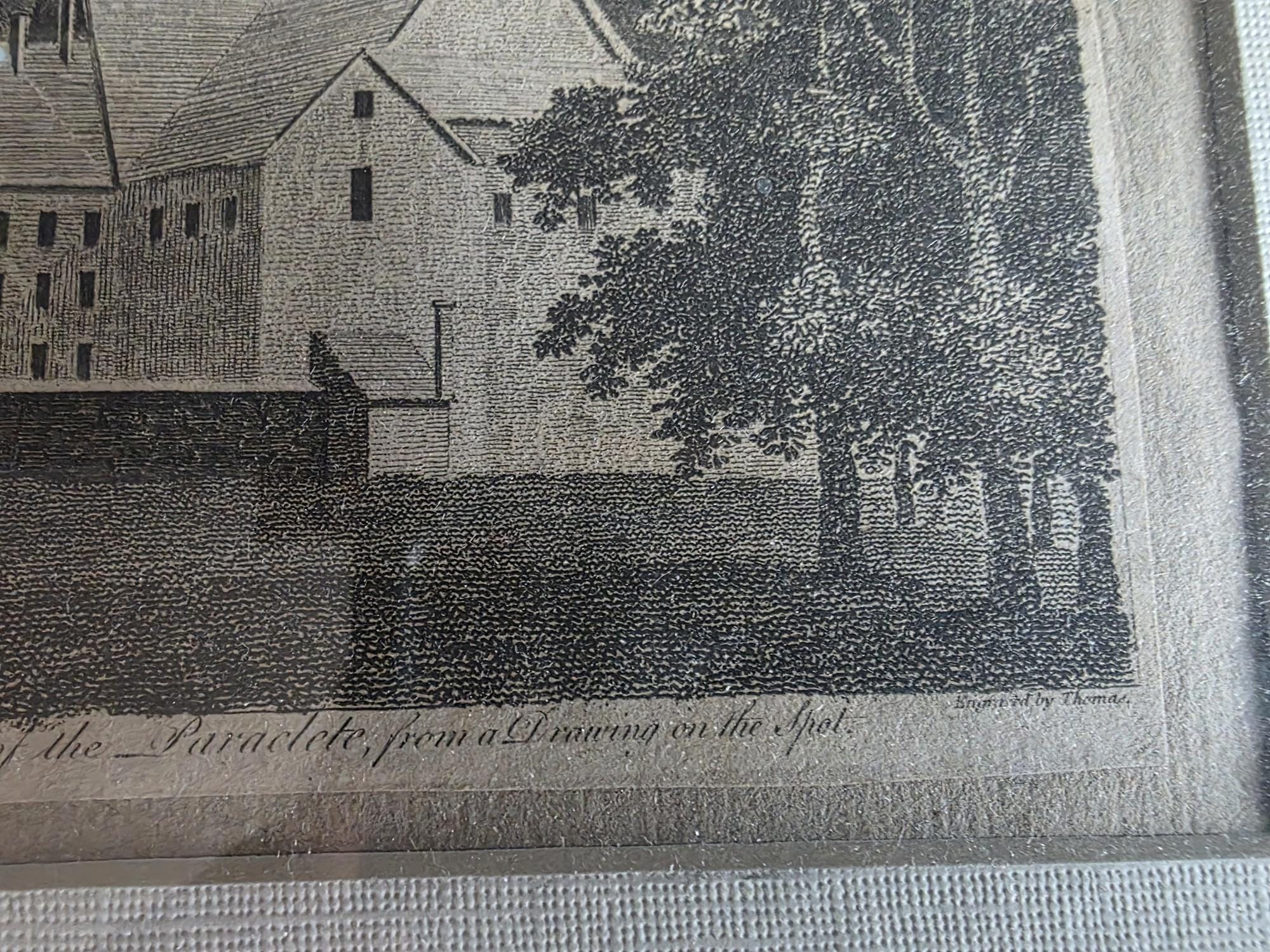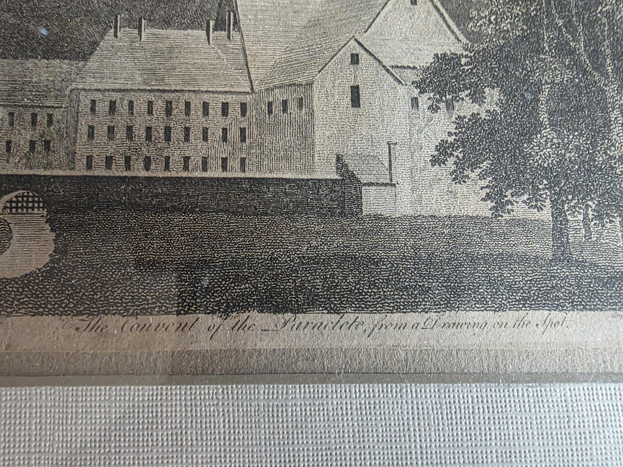 This elegant antique engraving, dating to the late 18th century, depicts "The Convent of the Paraclete," a site of significant historical and romantic importance as the monastery founded by Peter Abelard and later headed by Heloise. The print features the caption "The Convent of the Paraclete, from a Drawing on the Spot" and carries a publication line indicating it was published in March 1795 by J. Sewell, Cornhill, for the European Magazine. This copperplate engraving captures the architecture and surrounding landscape with the fine, rhythmic line work characteristic of the period, offering a serene glimpse into French monastic history.