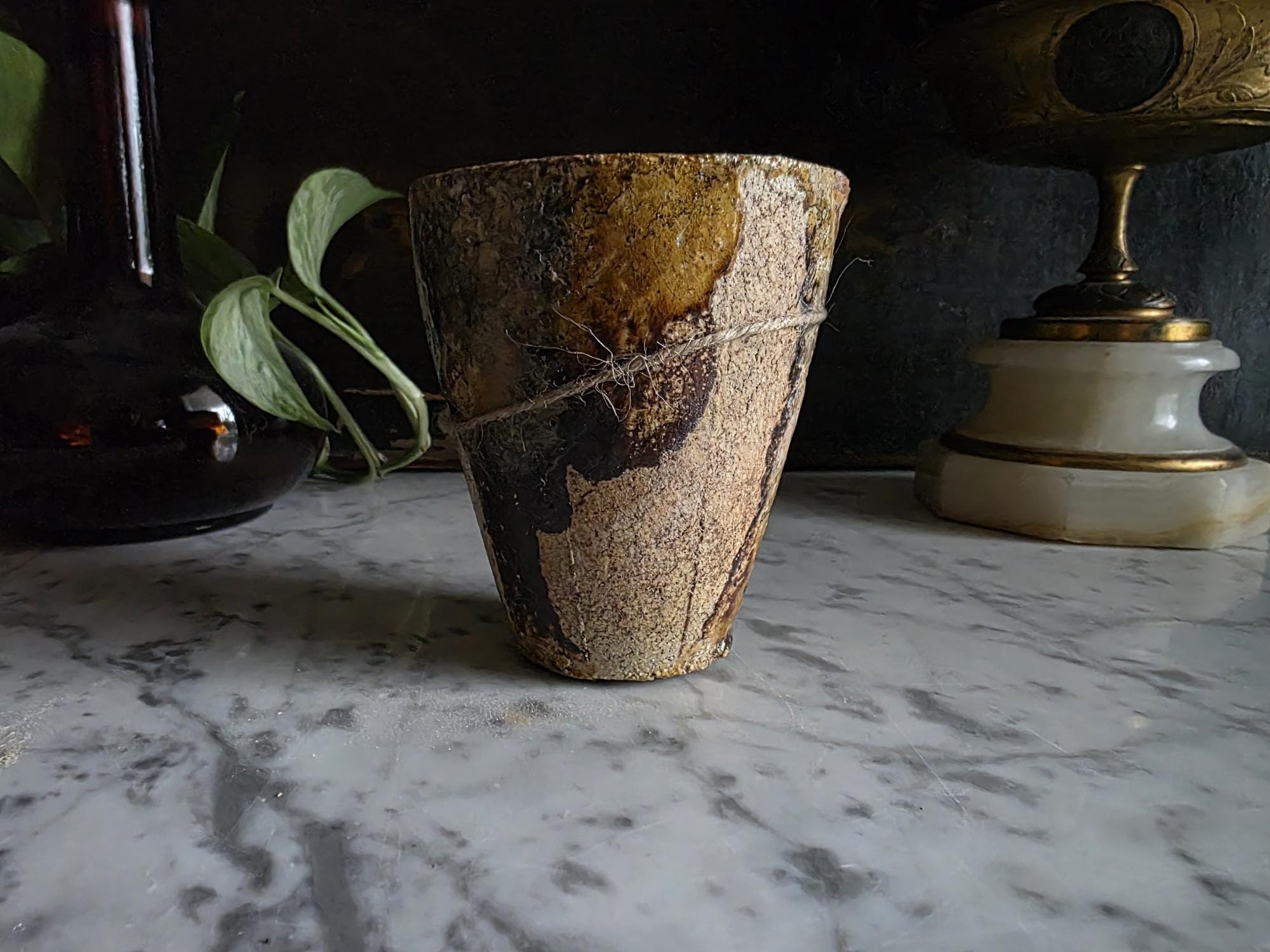 Measurements (approximate - rounded to the nearest quarter inch): 4 inches in height 3.5 inches in diameter at top 2 inches diameter at bottom