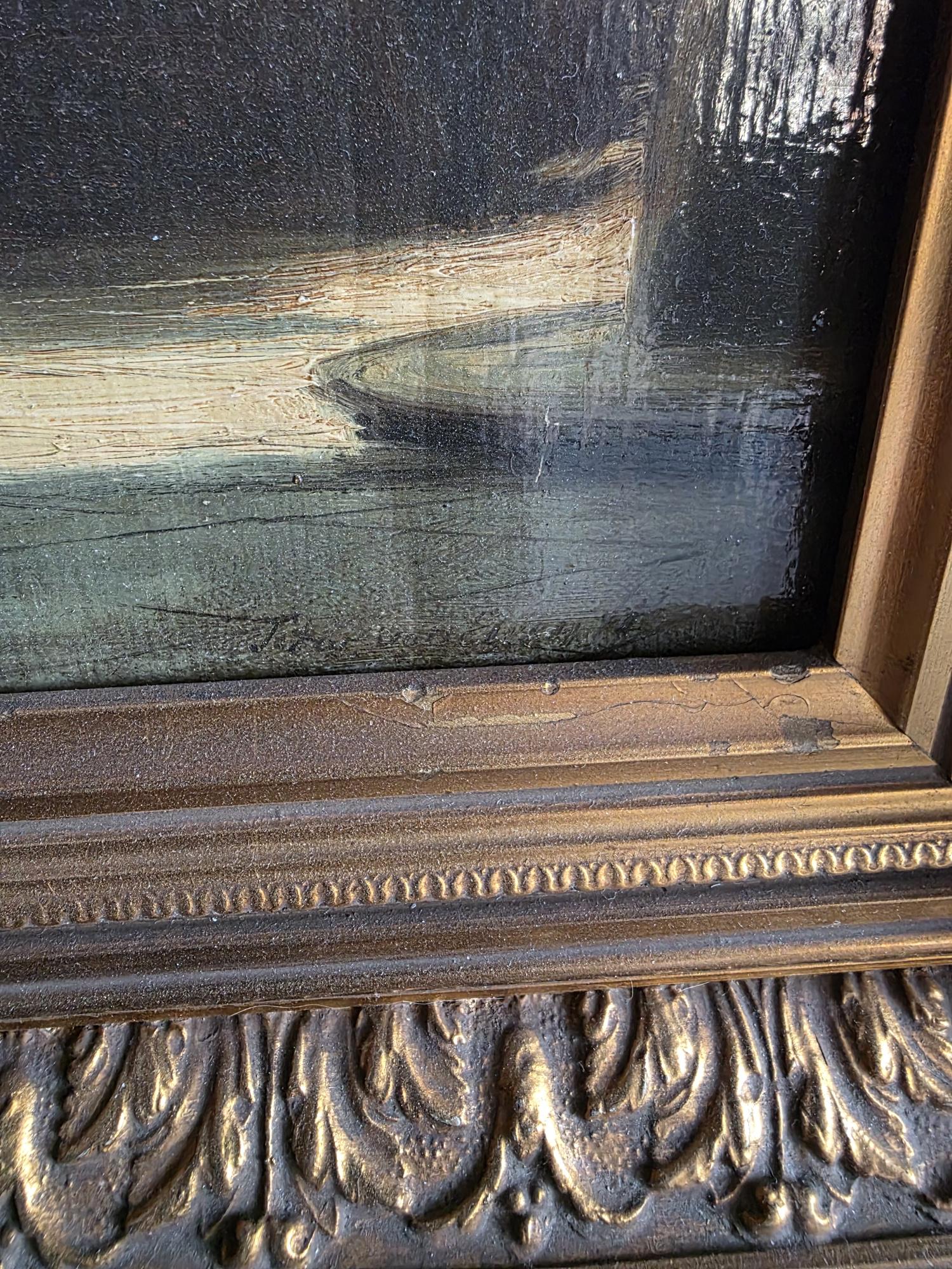 Measurements (approximate): 18 inches in height 13.5 inches in width 2.5 inches in depth The painting is 13 inches in height x 8.75 inches in width