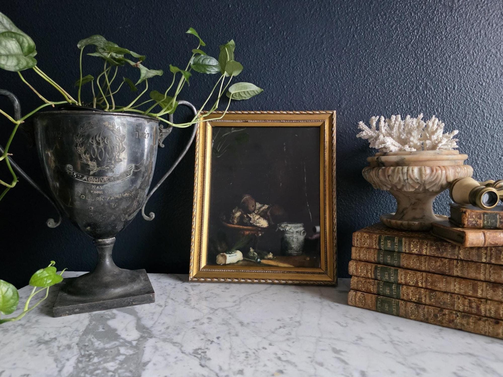 VINTAGE & ANTIQUE Vintage and antique items are pre-owned and aged goods. In most cases, we do not clean or polish any items that come into our shop. Once you remove an item's traces of age and patina it's not something you can reverse, so we leave those activities up to the buyer. We do not disassemble found art from their frames unless it is necessary to differentiate a print from an original piece of art. Vintage prints purchased from this shop could originate from any print media (e.g., magazines, books, photographs, art prints, etc.). We try our best to describe items accurately and disclose any and all flaws and imperfections. Please refer to pictures as a visual description. We want to make sure you are happy with your purchase so, please do not hesitate to ask any questions you may have prior to checkout.