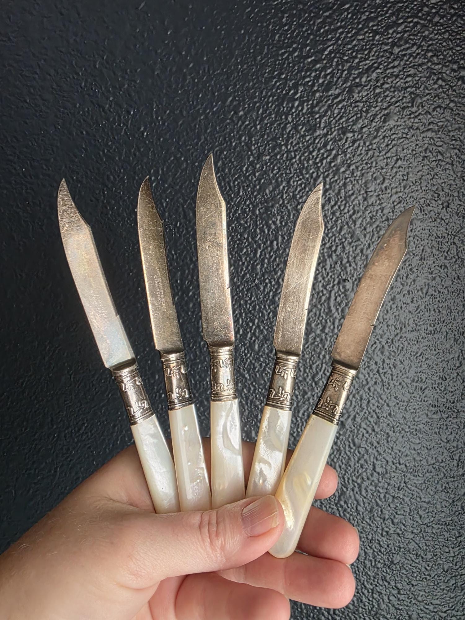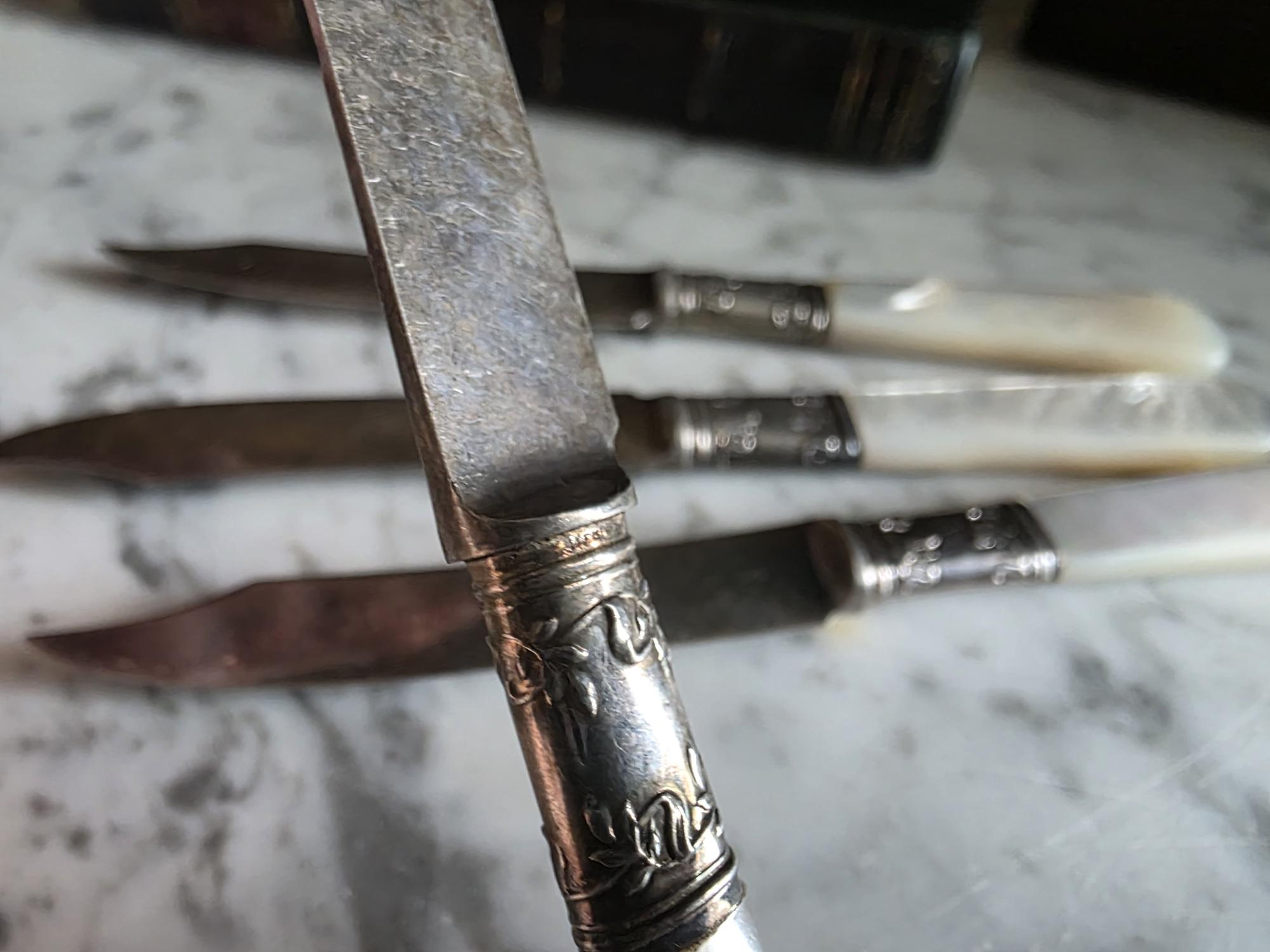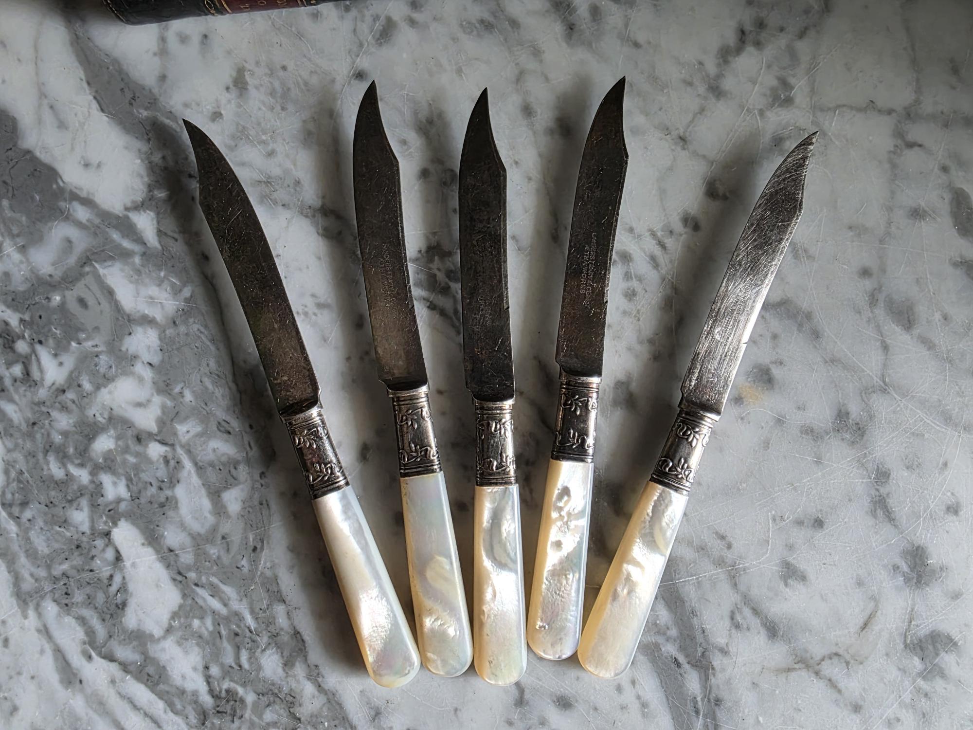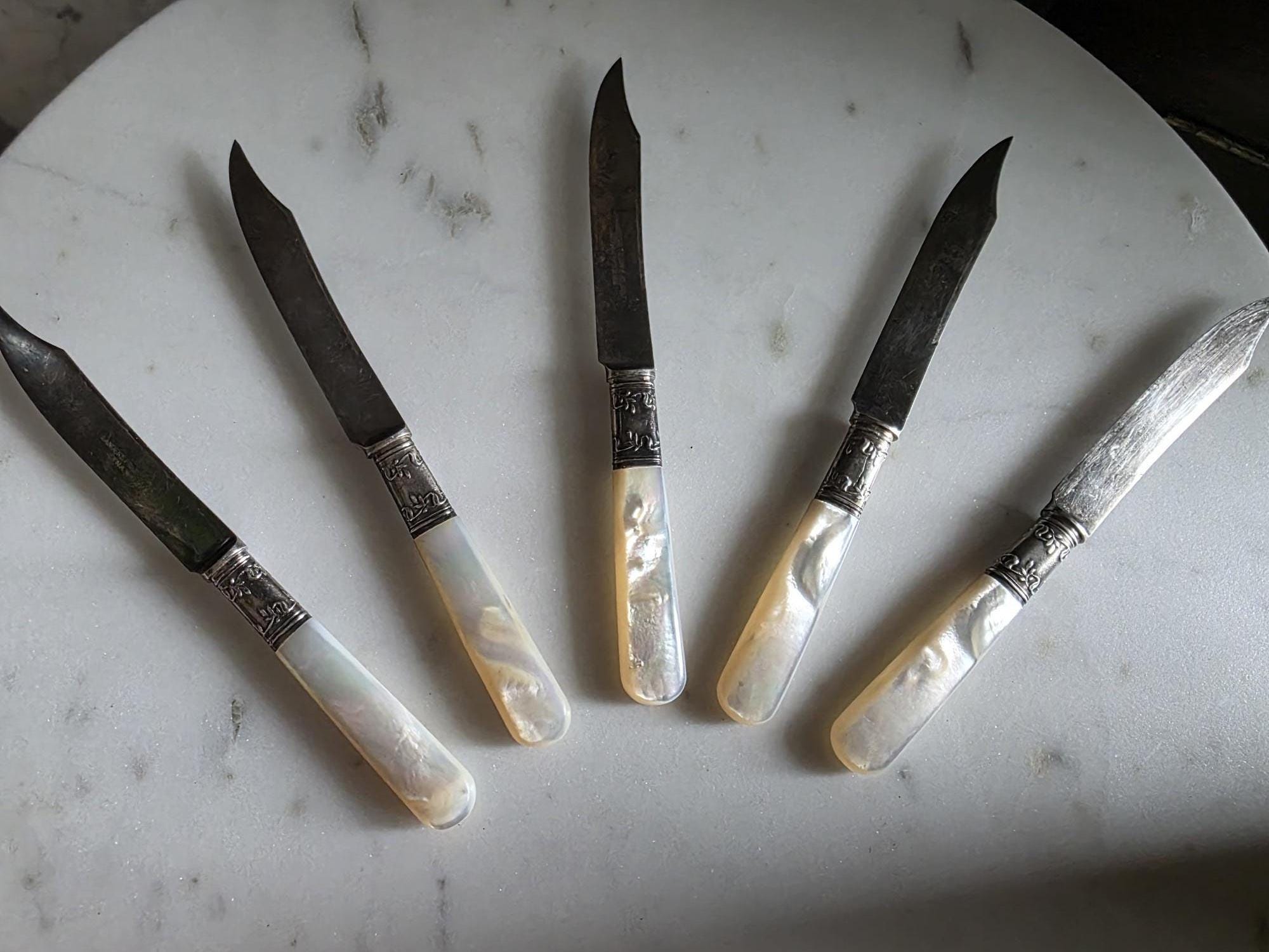 Condition: Excellent condition, no chips, cracks, or breaks to the mother of pearl handles.