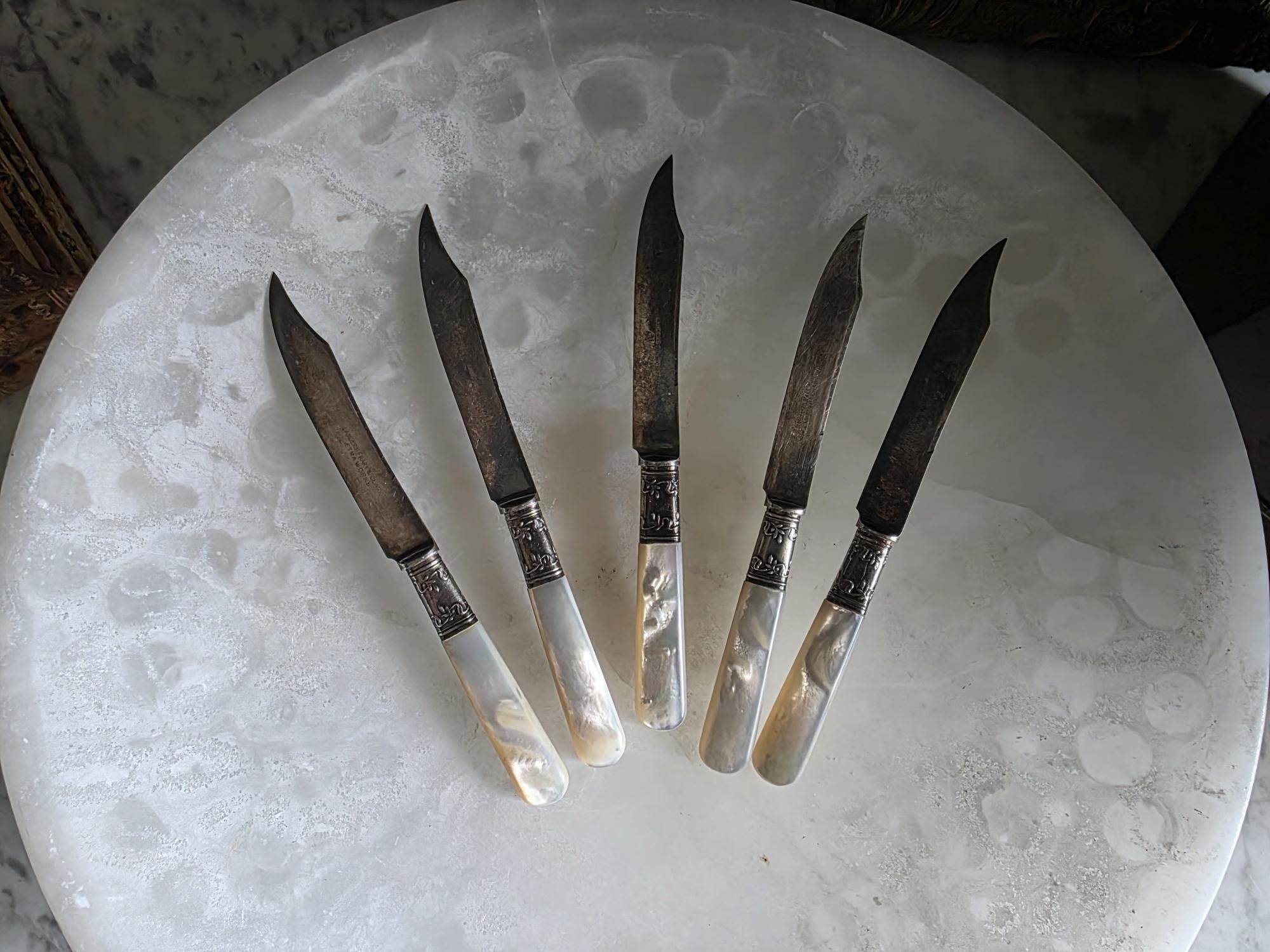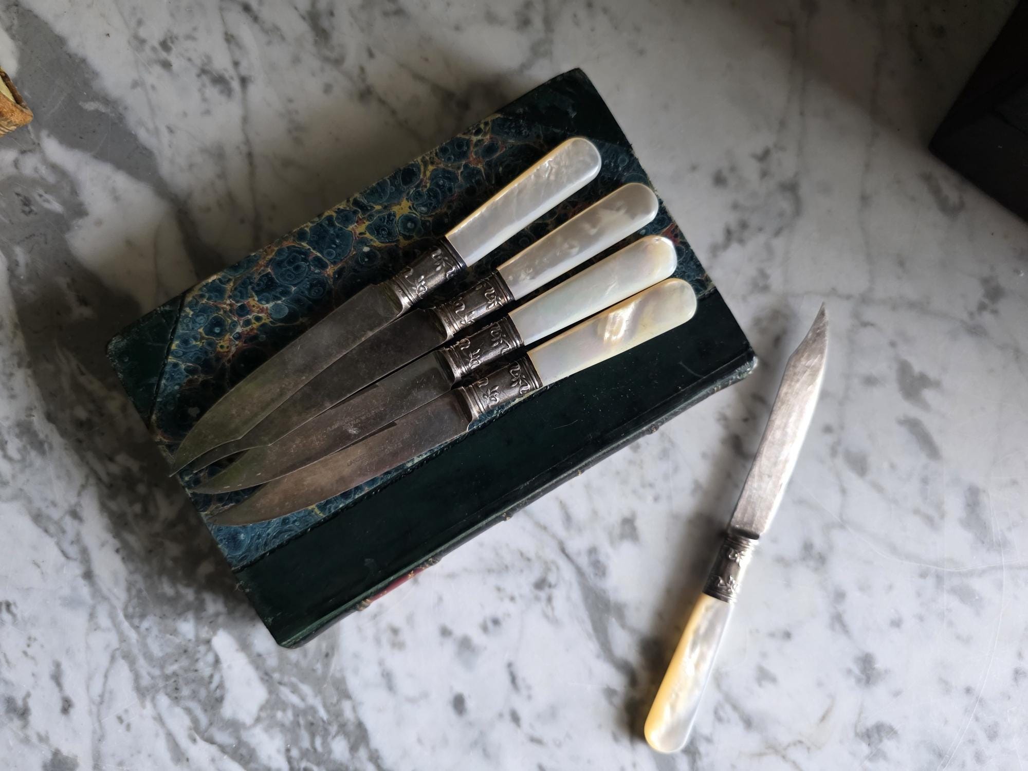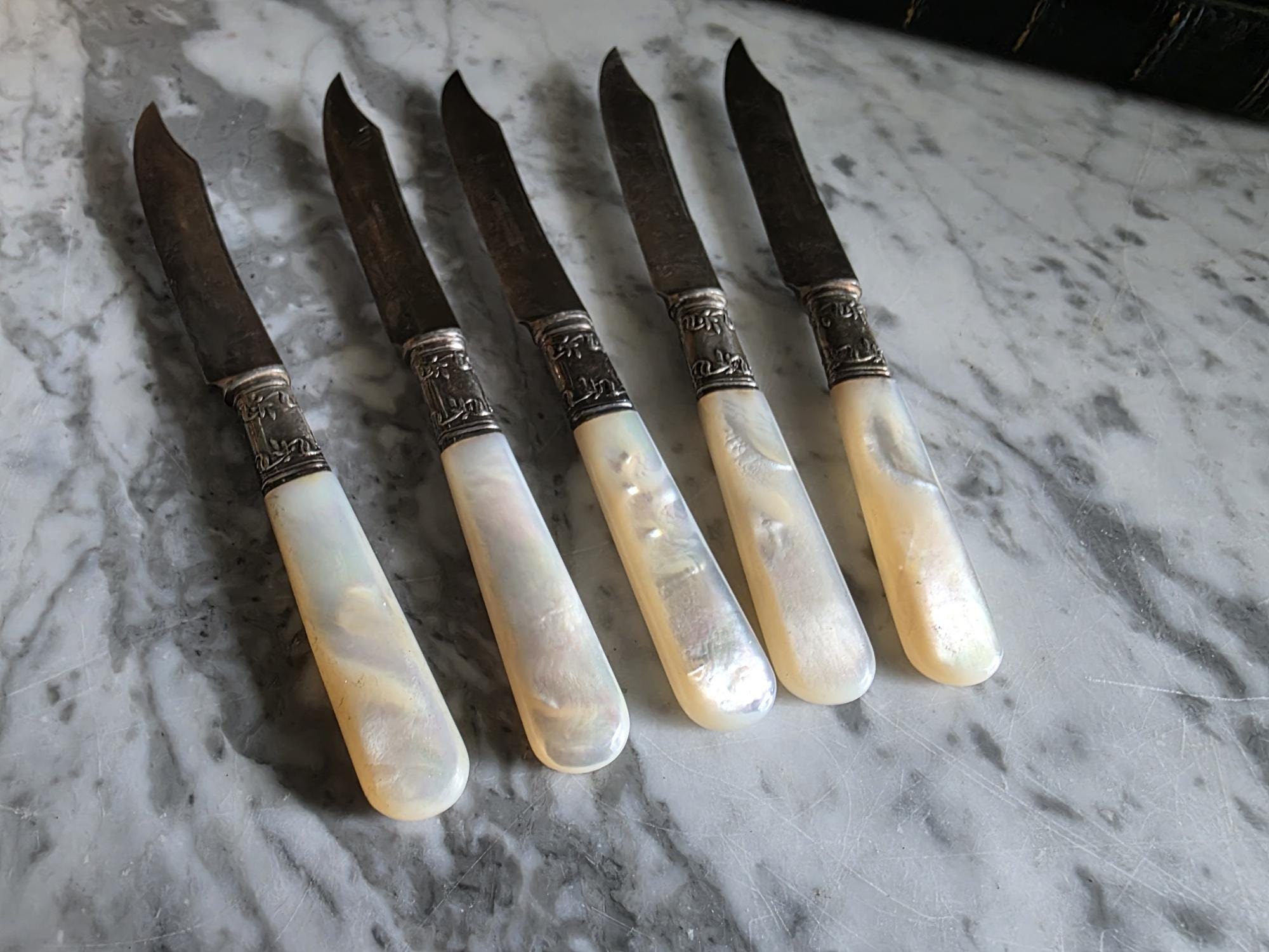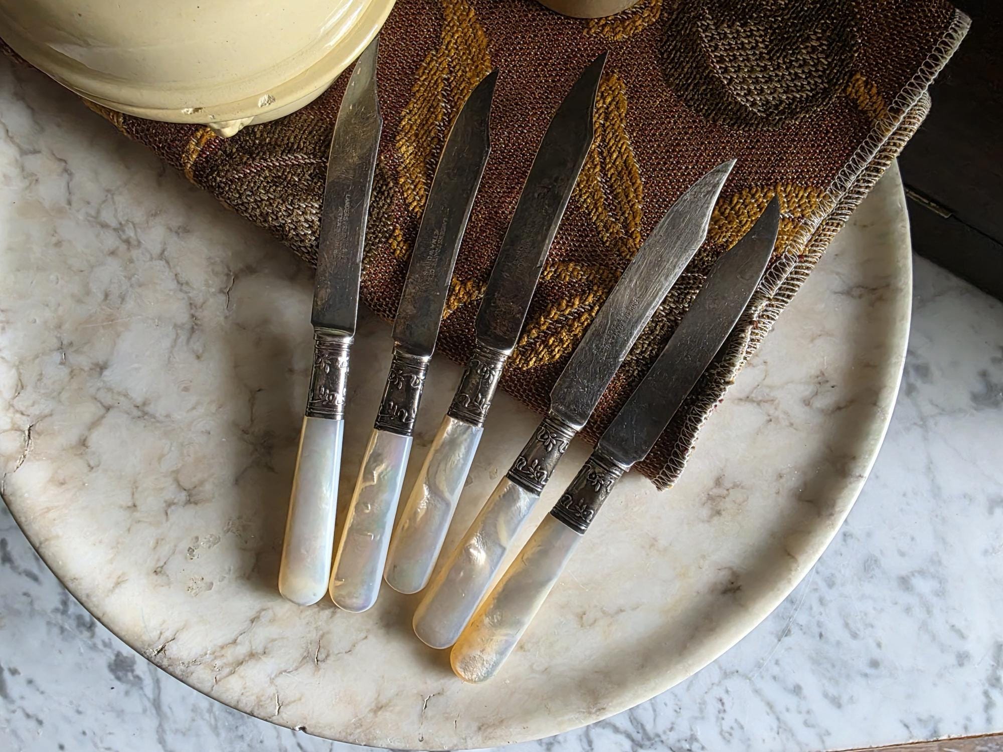 Condition: Excellent condition, no chips, cracks, or breaks to the mother of pearl handles.